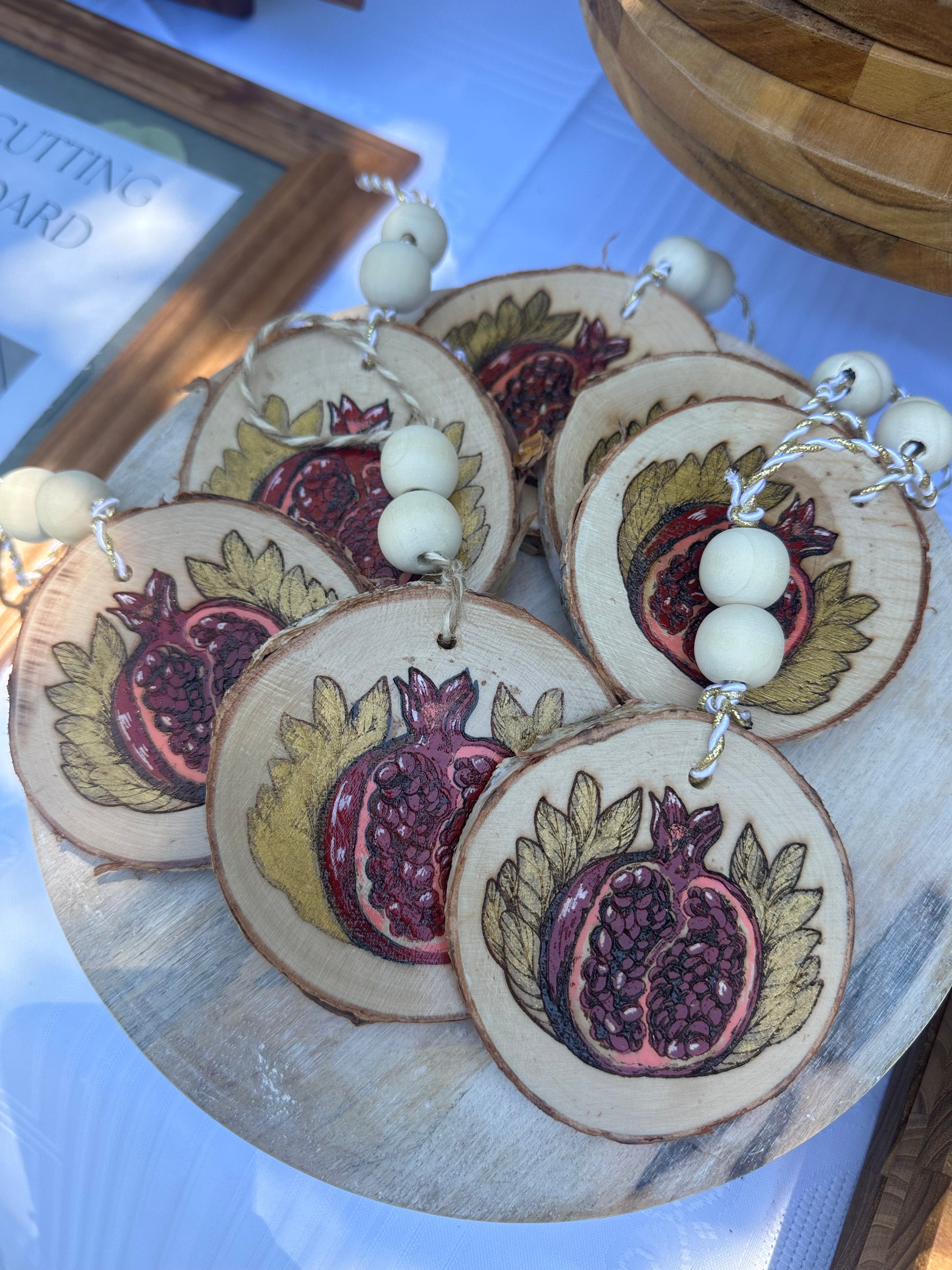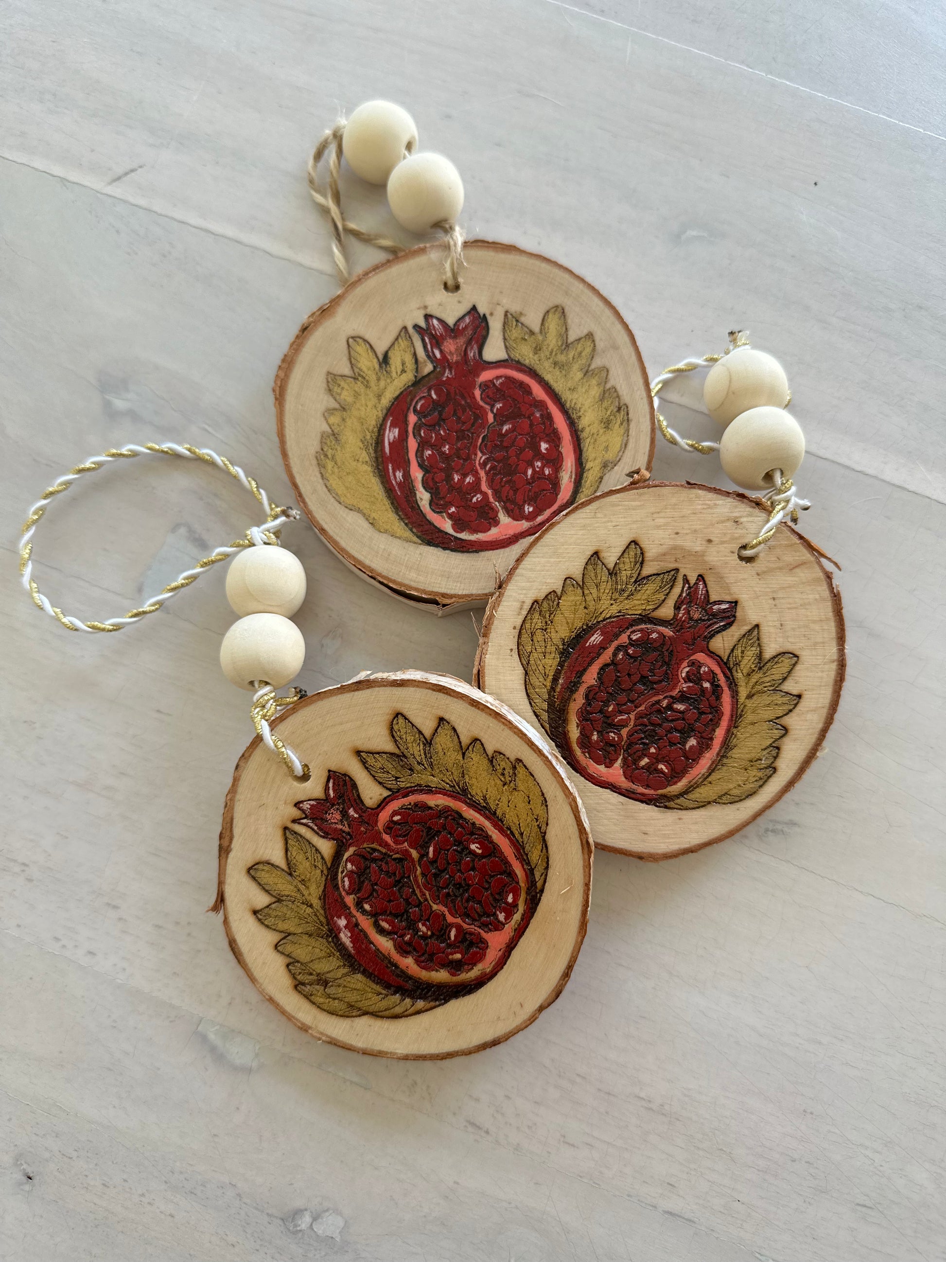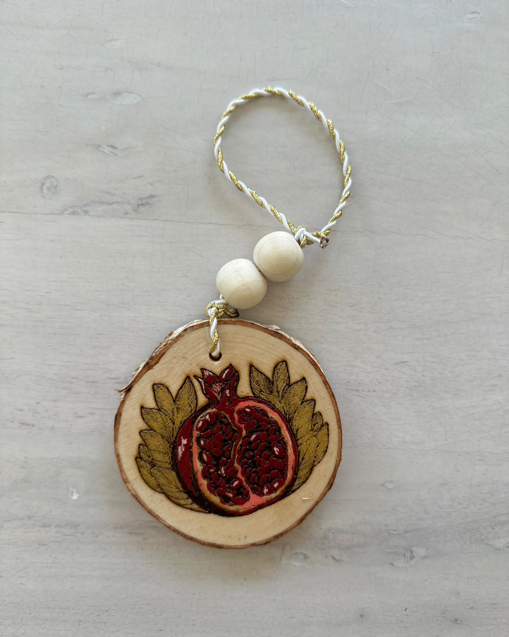 Introducing our exquisite laser engraved, and-painted with acrylic, and gold leaf Pomegranate Ornament, a masterpiece of artistry and craftsmanship that captures the essence of Armenian elegance and tradition.